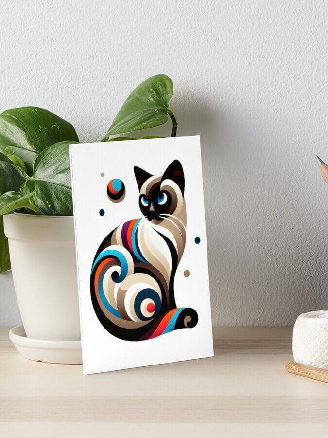 Abstract Siamese cat art can transform any living space into a cozy, stylish retreat. Wall art, such as prints or canvases, adds a touch of feline sophistication to your home. Pillowcases, rugs, and lampshades featuring abstract designs bring subtle cat-themed elements to your decor.