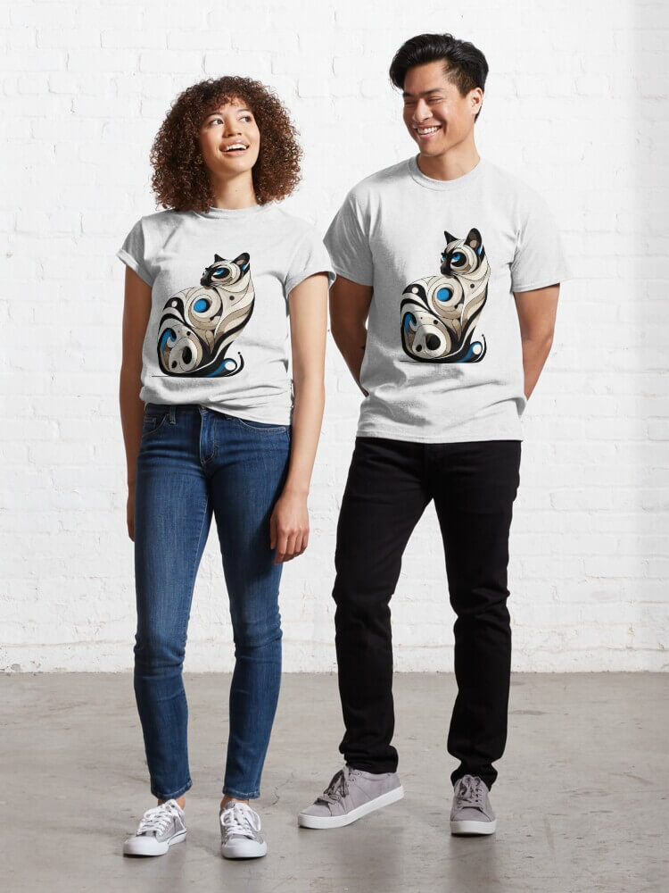 Wearable art is another popular way to showcase Siamese cat designs. Clothing items like T-shirts, scarves, and tote bags featuring abstract cat art make bold statements. Jewelry, such as necklaces or earrings shaped like abstract Siamese cats, adds a unique touch to your outfit.
