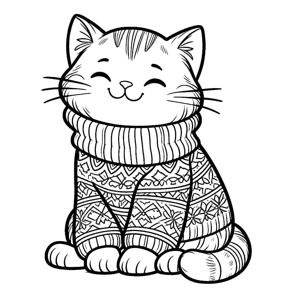 Kids will enjoy coloring this cozy image of a cat sitting snugly in a Christmas sweater, looking ready to spread holiday cheer.